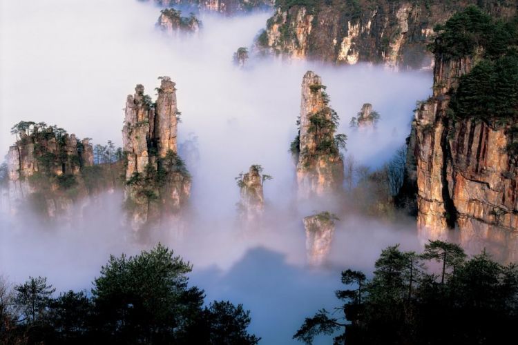 早餐后乘车赴中国第一个国家森林公园【武陵源核心景区】(包含进山门票/百龙电梯+天子山索道往返/景区循环游览不走回头路),走进素有“扩大的盆景,缩小的仙境”美誉的【天子山景区】:看峰墙之绝,峰丛之秀,峰林之奇,观仙女献花、御笔峰、神堂湾等景点;参观【袁家界景区】:探寻《阿凡达》电影中的群山漂浮、星罗棋布的玄幻莫测世界--“哈利路亚山”即“南天一柱”(又名乾坤柱),参观云雾飘绕、峰峦叠嶂,继往气势磅礴的迷魂台、天下第一桥等空中绝景;漫步世界最美的【金鞭溪风景区精华段】:杉林幽静,穿行在峰峦幽谷云间,溪水明净,人沿清溪行,胜似画中游,这是一条观赏性与自娱性结合的旅游线路,十里长溪,山回路转,一步一景,十步一重天,小溪潺潺的流经你的脚下,似琵琶,似古筝,时而丁冬悦耳,时而涓涓小吟。参观亚洲第二大溶洞奇观【地下明珠-黄龙洞】(包含门票,游览约2.5小时):洞中有洞,洞中有河,由石灰质溶液凝结而成的石钟乳、石笋、石花、石幔、石枝、石管、石珍珠、石珊瑚、定海神针等洞穴景观遍布其中,无所不奇,无奇不有,仿佛一座神奇的地下"魔宫",享有“中华神奇洞府,世界溶洞奇观”之美誉。晚餐后观赏【张家界大型民俗歌舞晚会】(赠送观赏,无优无退):这是一台体现湘西人民风俗文化,饱含快乐与浪漫、激情与狂野的大型歌舞篝火盛典,是一台在世界范围内拥有极高知名度和美誉度的大型民俗史诗情景剧。它凝聚了数千年湘西民俗精粹,及当代文化学者和表演艺术家精益求精的创意写真,是湘楚文化集大成之作。自面世以来,以广阔的思维视角和对人文自然的独特运用,创造性地打造了一场中国旅游产业中绝无仅有的视听盛宴,在艺术和文化的糅合中析解出民俗语言的无限魅力。